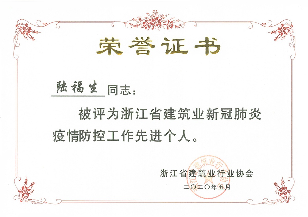 6月5日,浙江省建筑行業(yè)協(xié)會五屆三次理事會暨五屆四次常務理事會在杭州召開。會上公布和表彰了浙江省建筑業(yè)新冠肺炎疫情防控工作先進單位和先進個人。浙江嘉興福達建設股份有限公司被評為“浙江省建筑業(yè)新冠肺炎疫情防控工作先進單位”,董事長陸福生被評為“浙江省建筑業(yè)新冠肺炎疫情防控工作先進個人”。