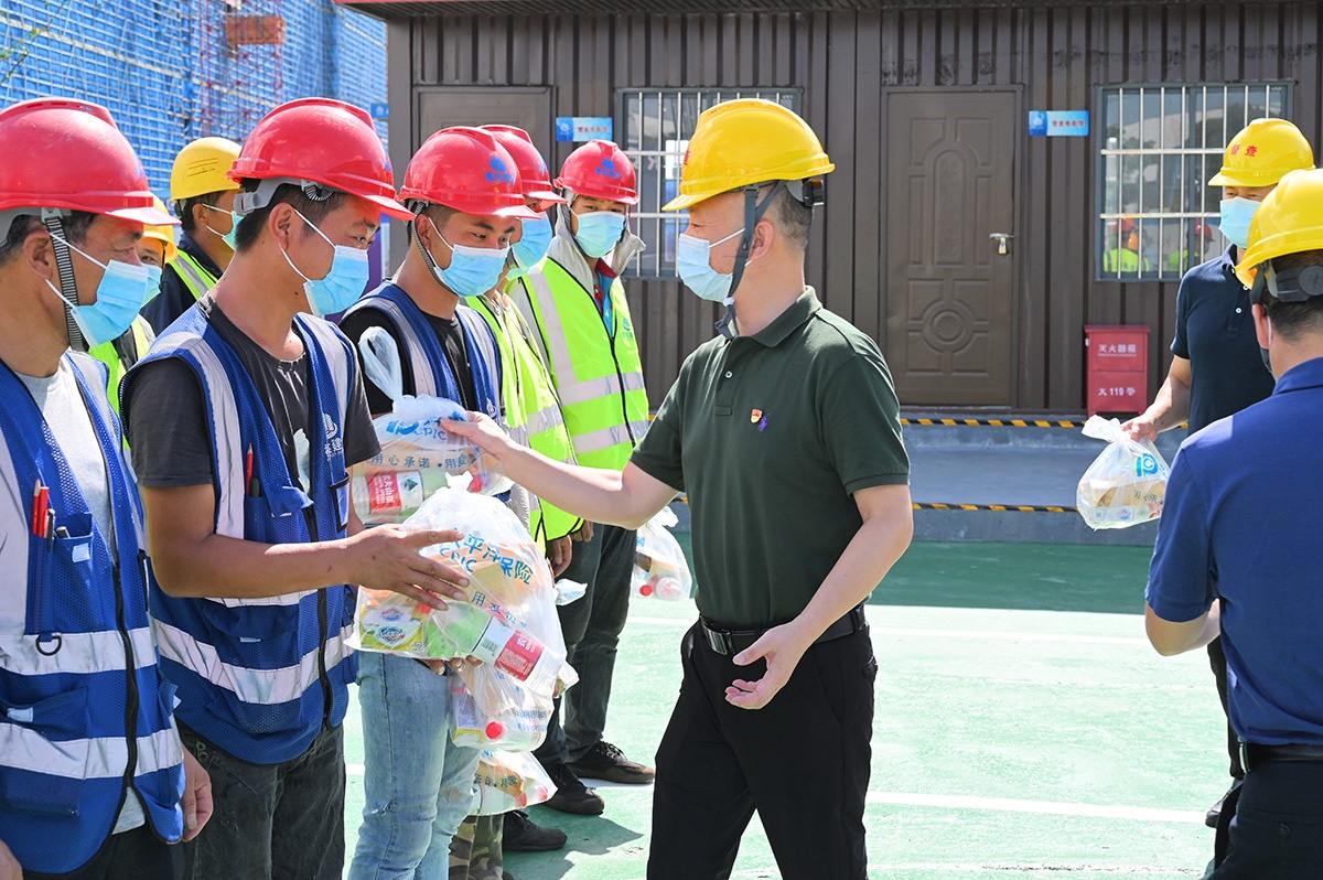 8月4日下午,市建設(shè)局金洪良副局長(zhǎng)帶隊(duì)到福達(dá)建設(shè)承建的秀洲區(qū)德沃康科技集團(tuán)有限公司年產(chǎn)1000萬(wàn)套線性驅(qū)動(dòng)系統(tǒng)研發(fā)生產(chǎn)項(xiàng)目現(xiàn)場(chǎng),為堅(jiān)守在高溫下的一線工作人員送去一份清涼和關(guān)愛(ài),叮囑工人們注意休息,保重身體,安全第一。企業(yè)要高度關(guān)注高溫暑期和新冠疫情反復(fù)雙重不利因素的影響,嚴(yán)格落實(shí)常態(tài)化疫情防控要求,毫不放松地做好項(xiàng)目建設(shè)和疫情防控各項(xiàng)工作。公司總經(jīng)理顧建明及質(zhì)安部相關(guān)負(fù)責(zé)人陪同慰問(wèn),并表態(tài)公司一定把防暑防疫兩項(xiàng)工作抓好抓實(shí),落實(shí)有力舉措,確保特殊時(shí)期建筑施工領(lǐng)域的生產(chǎn)安全、防疫安全。