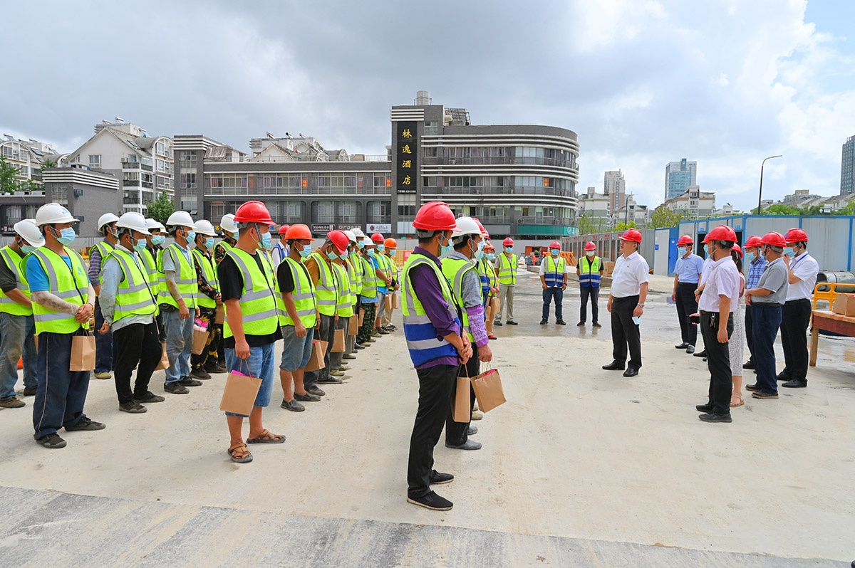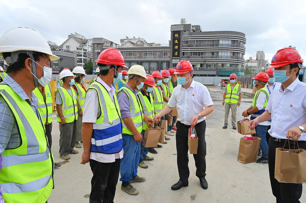 8月4日上午,秀洲區(qū)人大常委會(huì)主任董苗虎、區(qū)委副書記、政法委書記王永法等一行來(lái)到福達(dá)建設(shè)承建的秀洲國(guó)家高新區(qū)中心城市品質(zhì)提升項(xiàng)目-兩路兩園兩中心景觀品質(zhì)提升工程(二期)項(xiàng)目施工現(xiàn)場(chǎng),慰問(wèn)奮戰(zhàn)在工地一線的施工人員,送上防暑降溫慰問(wèn)品并叮囑施工人員要避開(kāi)高溫時(shí)段,合理安排作息時(shí)間,嚴(yán)格落實(shí)疫情防控、安全生產(chǎn)和防暑保護(hù)等措施。公司董事長(zhǎng)陸福生及質(zhì)安部相關(guān)負(fù)責(zé)人陪同慰問(wèn)。