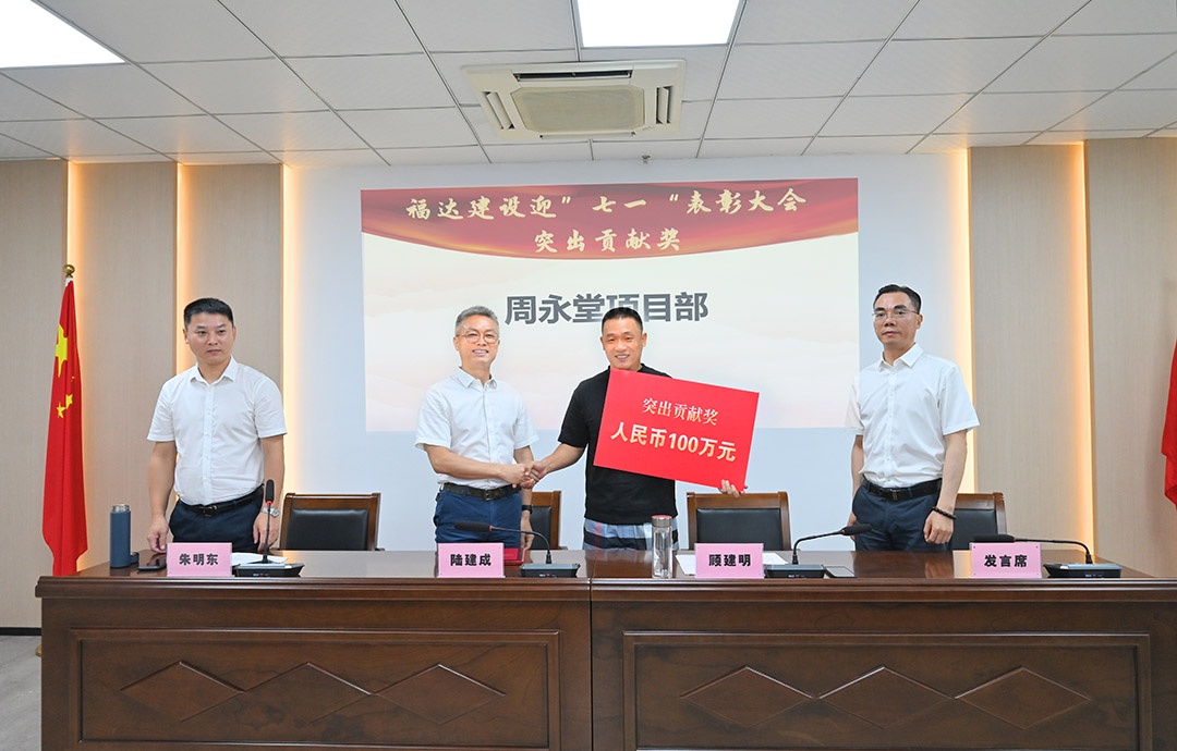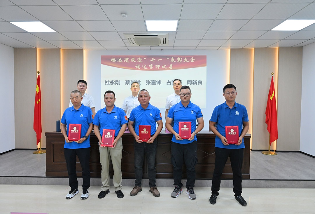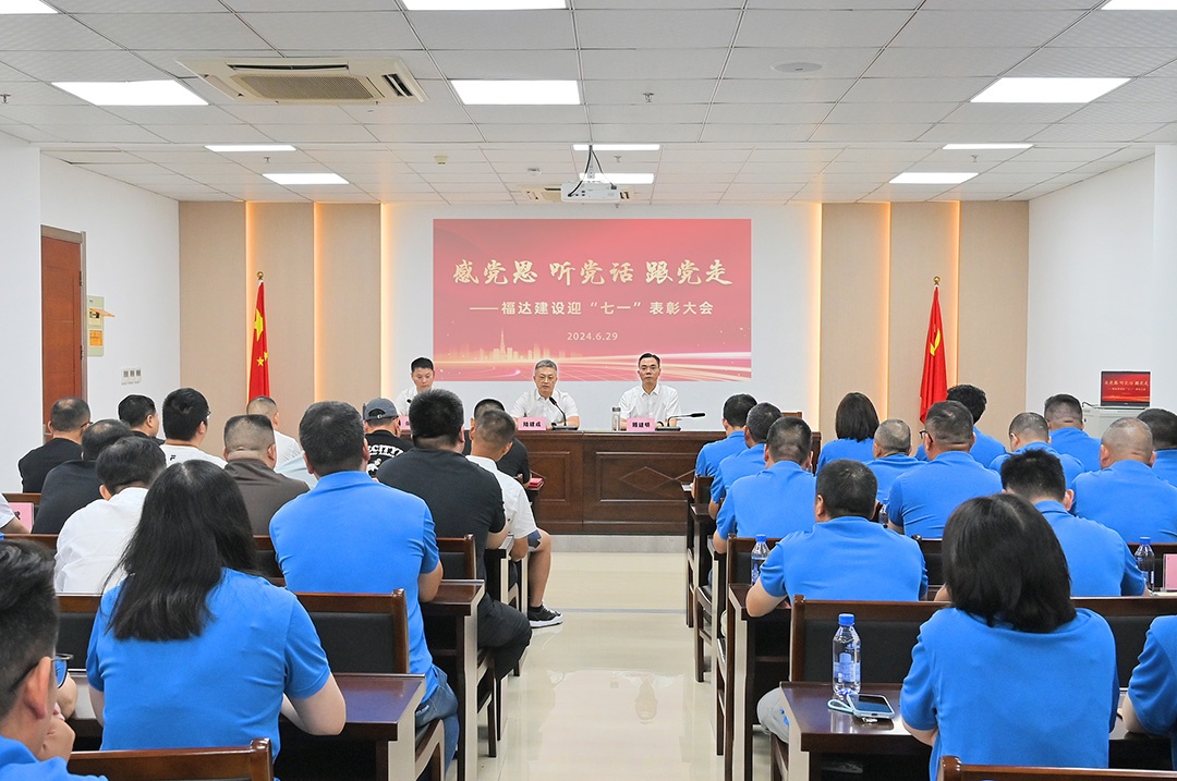 在中國共產(chǎn)黨建黨103周年暨浙江嘉興福達建設(shè)股份有限公司成立53周年來臨之際,我司舉行“感黨恩·聽黨話·跟黨走”為主題的“七一”表彰大會在公司總部嘉興市寶地大廈隆重召開。全體員工出席會議,會議室莊重整潔,會場懸掛著鮮艷的黨旗和鼓舞人心的標語,彰顯著喜慶的節(jié)日氛圍。