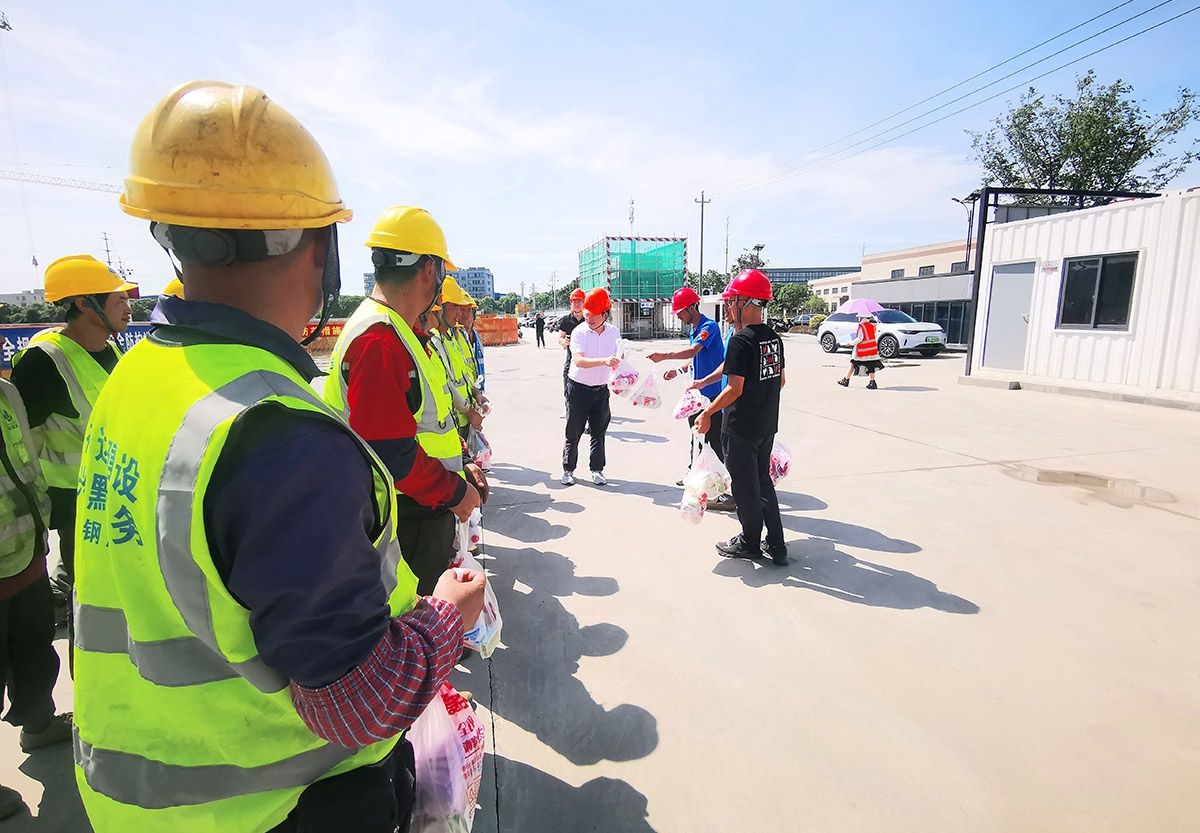 在這炎炎夏日,嘉興市秀洲區(qū)住建局黨委書記、局長郭華,蒞臨我司晶能微電子科技生產基地項目現場,慰問辛勤的一線作業(yè)人員,傳遞清涼關懷。郭局長高度贊揚了在酷暑下堅守崗位的勞動者們,親自向工人們分發(fā)毛巾及防暑降溫藥品,關切地提醒他們要合理安排作息,避免在高溫時段作業(yè),確保身體健康。