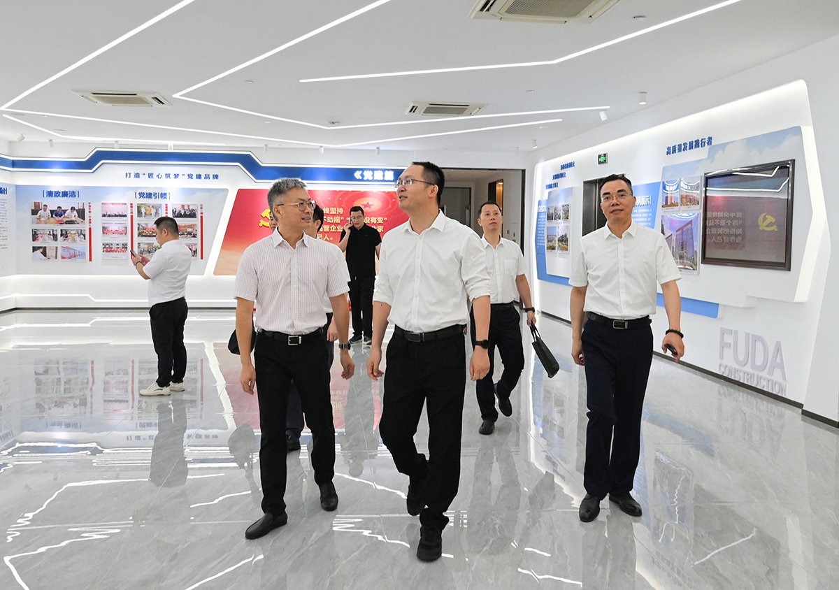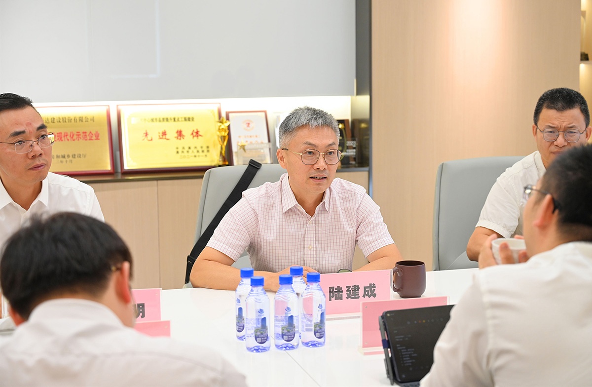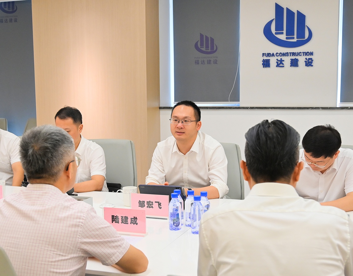 在調(diào)研中,鄒宏飛一行認(rèn)真聽取了公司董事長(zhǎng)對(duì)企業(yè)發(fā)展?fàn)顩r的匯報(bào)。陸建成圍繞公司在高質(zhì)量發(fā)展、項(xiàng)目施工、技術(shù)創(chuàng)新、紅色工地建設(shè)以及履行社會(huì)責(zé)任等方面進(jìn)行闡述,并詳細(xì)介紹了福達(dá)建設(shè)公司在清水砼施工技術(shù)和半導(dǎo)體廠房建設(shè)等領(lǐng)域的突出業(yè)績(jī)。