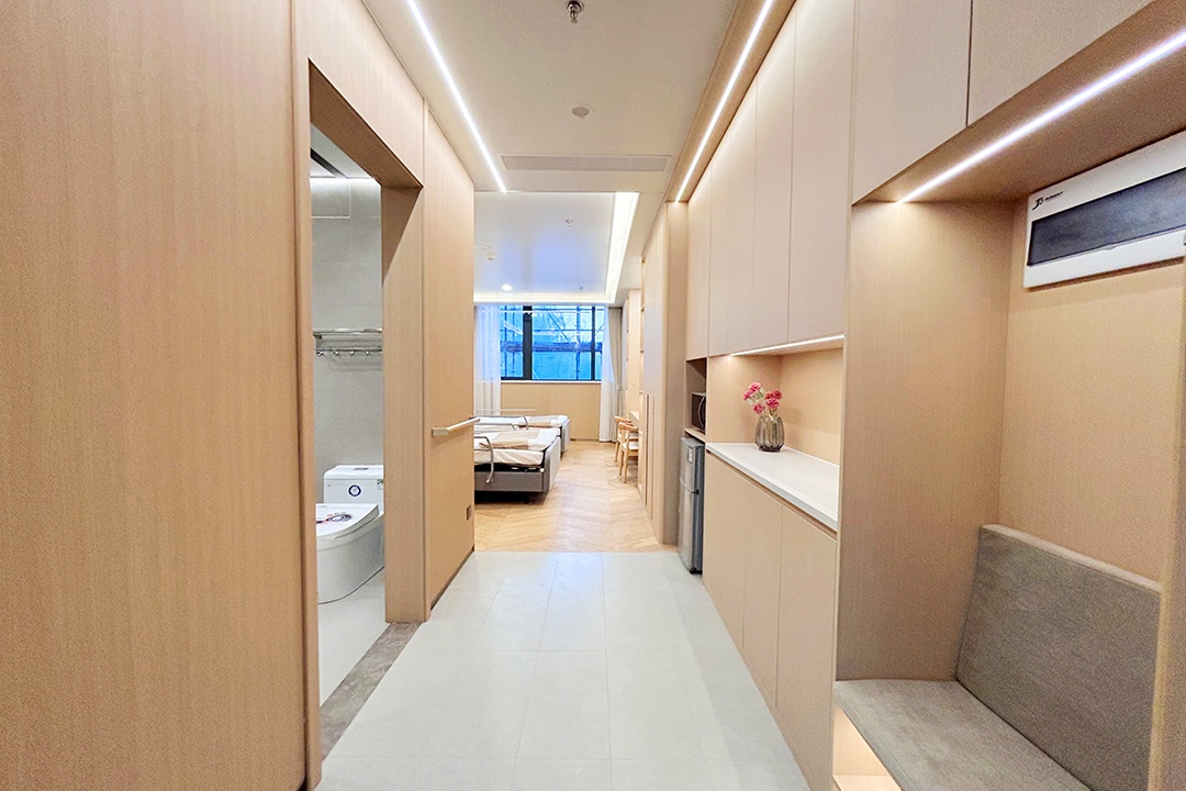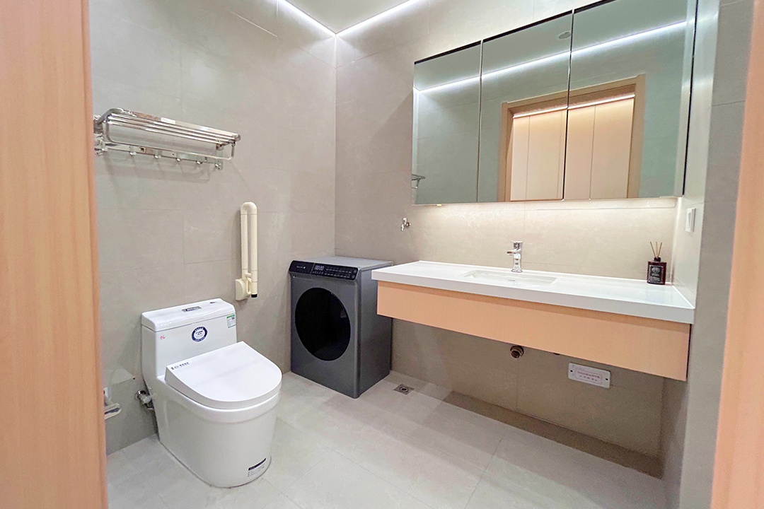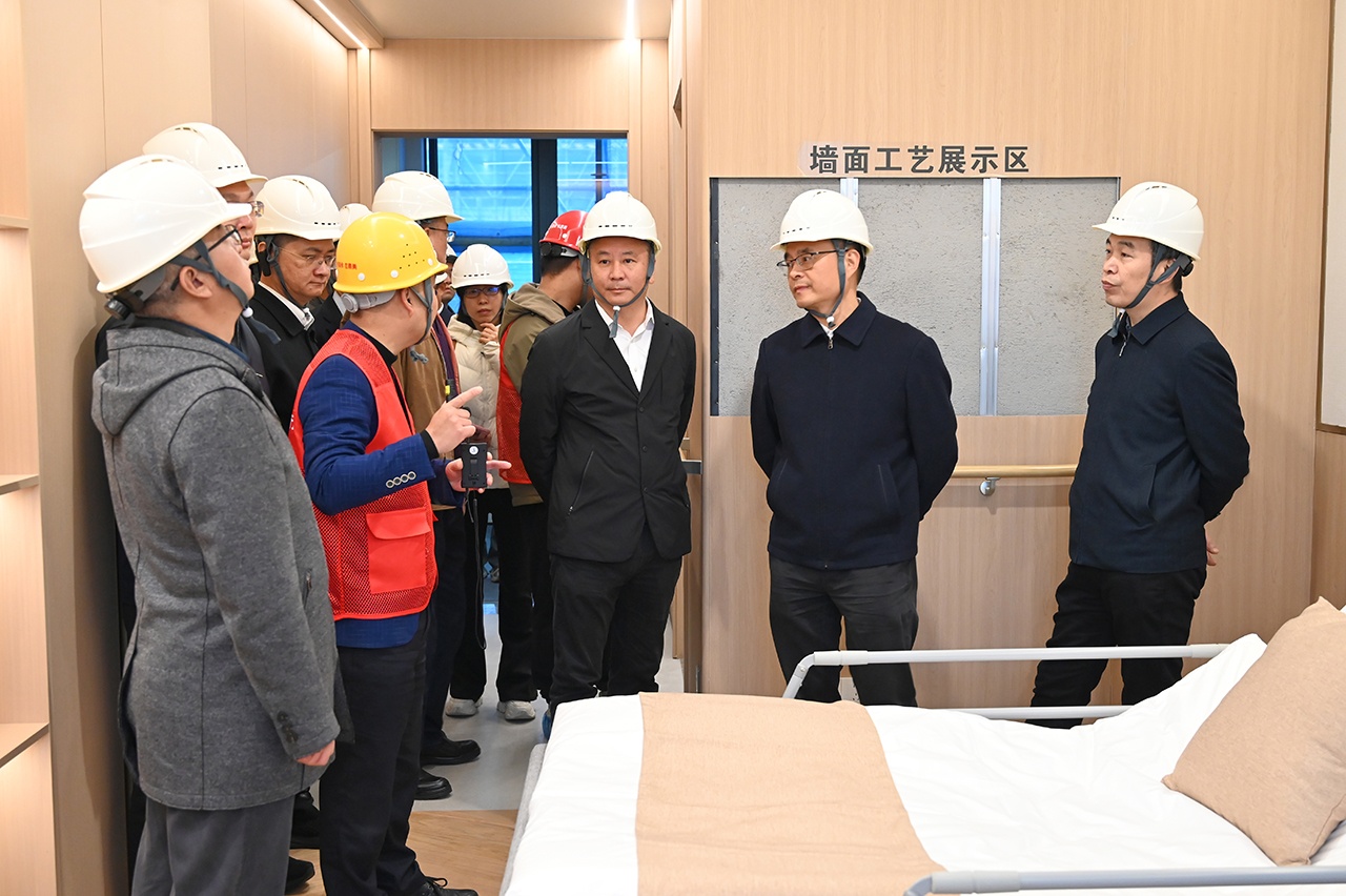 我司承建的秀湖頤養(yǎng)院項(xiàng)目有幸成為本次觀摩點(diǎn)之一,向參會(huì)人員展示了我們?cè)谘b配式裝修領(lǐng)域的最新成果,項(xiàng)目坐落于城市西進(jìn),運(yùn)河灣新城中心區(qū)域,工程造價(jià)約2.6億元,建筑規(guī)模4.5萬平米,土建裝配率達(dá)60%,涵蓋了預(yù)制疊合樓板、預(yù)制樓梯,裝配式裝修率達(dá)74.5%,主要采用了ALC內(nèi)墻,集成吊頂,一體化墻面及家具等技術(shù),呈現(xiàn)“建裝一體化”典型案例。