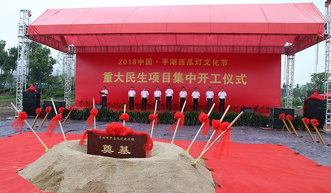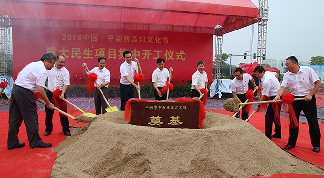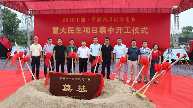 2018年9月21日上午,在平湖市中醫(yī)院遷建工程項(xiàng)目工地現(xiàn)場,2018中國·平湖西瓜燈文化節(jié)重大民生項(xiàng)目集中開工儀式隆重舉行,平湖市四套班子領(lǐng)導(dǎo)、平湖市重點(diǎn)民生實(shí)事項(xiàng)目單位、工程建設(shè)單位、市民代表等200余人見證這一重大的歷史時刻。本次集中開工的8個項(xiàng)目涉及教育、醫(yī)療、養(yǎng)老、交通、文化等多個方面,總投資達(dá)20多億元,福達(dá)建設(shè)負(fù)責(zé)實(shí)施嘉興“百年百項(xiàng)”工程——平湖市中醫(yī)院遷建工程(又名:平湖市南市醫(yī)療服務(wù)中心項(xiàng)目)。