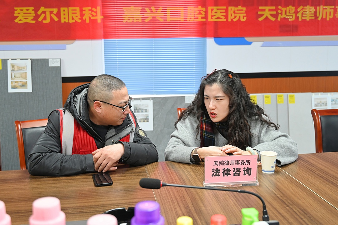 活動現(xiàn)場熱鬧非凡,處處洋溢著溫馨的氛圍。免費義診、免費理發(fā)、法律咨詢等服務(wù)攤位有序排開。黨員和志愿者們各就各位,全身心地投入到為工人們提供貼心服務(wù)的工作中。在義診區(qū)域,來自嘉興愛爾眼科醫(yī)院和嘉興口腔醫(yī)院的醫(yī)護(hù)人員們認(rèn)真細(xì)致地為工人們進(jìn)行眼科、口腔檢查以及血壓測量,耐心解答各種健康問題,并發(fā)放健康宣傳資料。他們憑借專業(yè)的知識和無微不至的關(guān)懷,幫助工人們增強(qiáng)健康意識,掌握科學(xué)的自我保健方法。法律咨詢攤位前,天鴻律師事務(wù)所的律師們耐心傾聽工人們的法律疑問,用通俗易懂的語言講解勞動權(quán)益保護(hù)、合同糾紛等與工人切身利益相關(guān)的法律知識,使工人們在繁忙的工作之余,也能有效提升法律意識,更好地維護(hù)自身合法權(quán)益。
