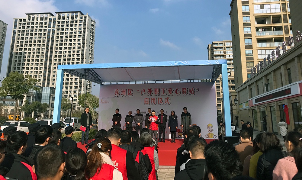 12月23日上午,秀洲區(qū)“戶外職工愛心驛站”啟動儀式在秀園社區(qū)管理委員會舉行。