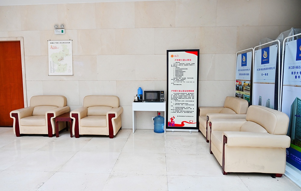 戶外勞動(dòng)者是文明城市創(chuàng)建的主力軍,也是最值得尊敬的人。為加強(qiáng)全區(qū)新時(shí)代文明實(shí)踐點(diǎn)建設(shè),進(jìn)一步推動(dòng)文明城市創(chuàng)建工作,讓城市更有“溫度”,今年9月,秀洲區(qū)全面啟動(dòng)“戶外職工愛心驛站”創(chuàng)建工作,從而有效緩解環(huán)衛(wèi)工人、出租車司機(jī)、公交司機(jī)、交通警察、城管人員、快遞小哥、市政維修工和建筑工人等戶外勞動(dòng)者飲水、休息、飯菜加熱、取暖納涼、手機(jī)充電、臨時(shí)避雨等現(xiàn)實(shí)問題。浙江嘉興福達(dá)建設(shè)股份有限公司積極參與其中,在寶地大廈一樓,配備了桌椅、飲水設(shè)備、手機(jī)充電設(shè)施、應(yīng)急藥箱、微波爐、冷暖設(shè)備等供戶外勞動(dòng)者免費(fèi)使用,還增設(shè)了閱讀區(qū),供戶外職工休息時(shí)閱讀。